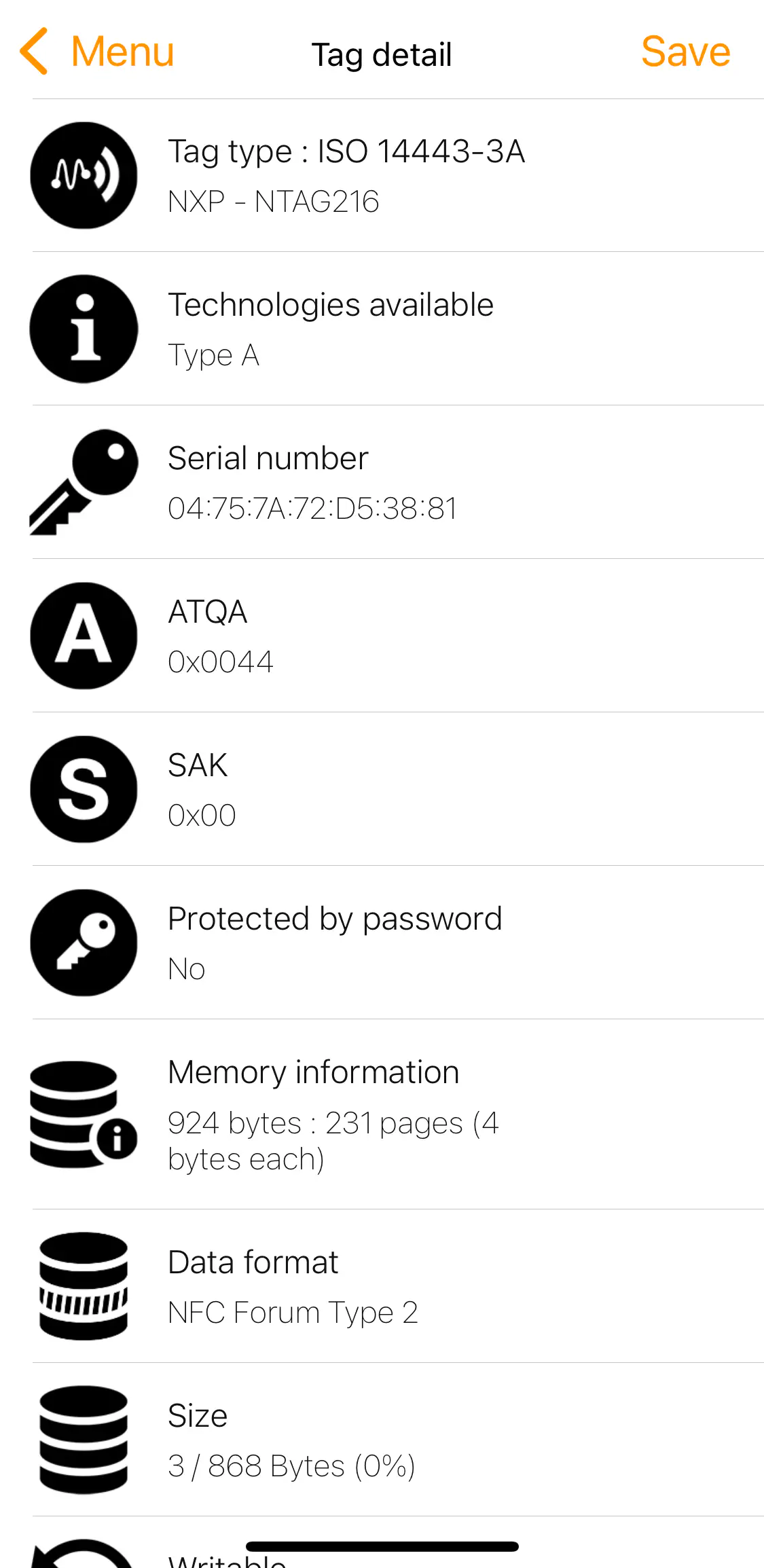 NFC tools showing basic information about this NFC tag Open in new tab (full image size 55 KiB)