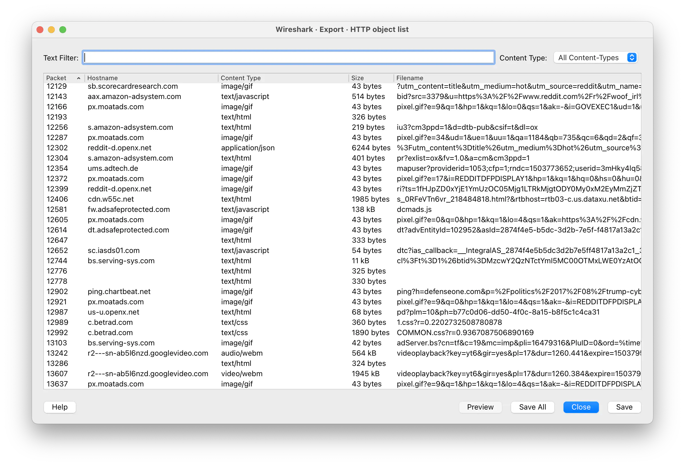 Exporting packet contents Open in new tab (full image size 39 KiB)
